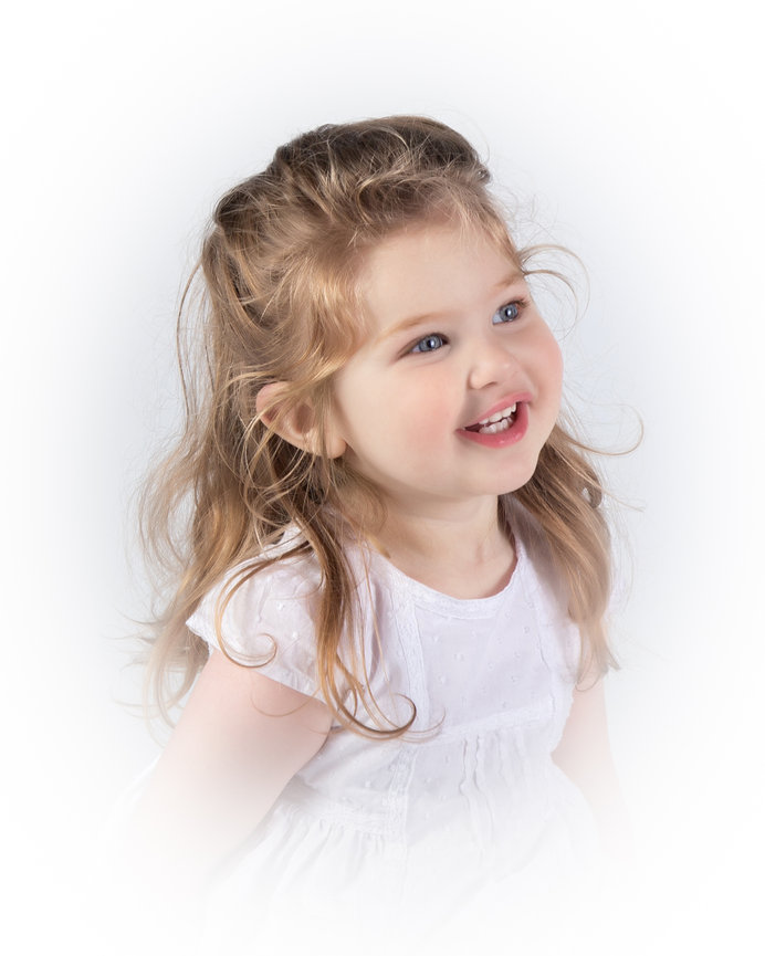 These portraits are intentionally minimal, finished with a signature white vignette that removes all distraction, all era, all excess — leaving only your child, rendered in light.